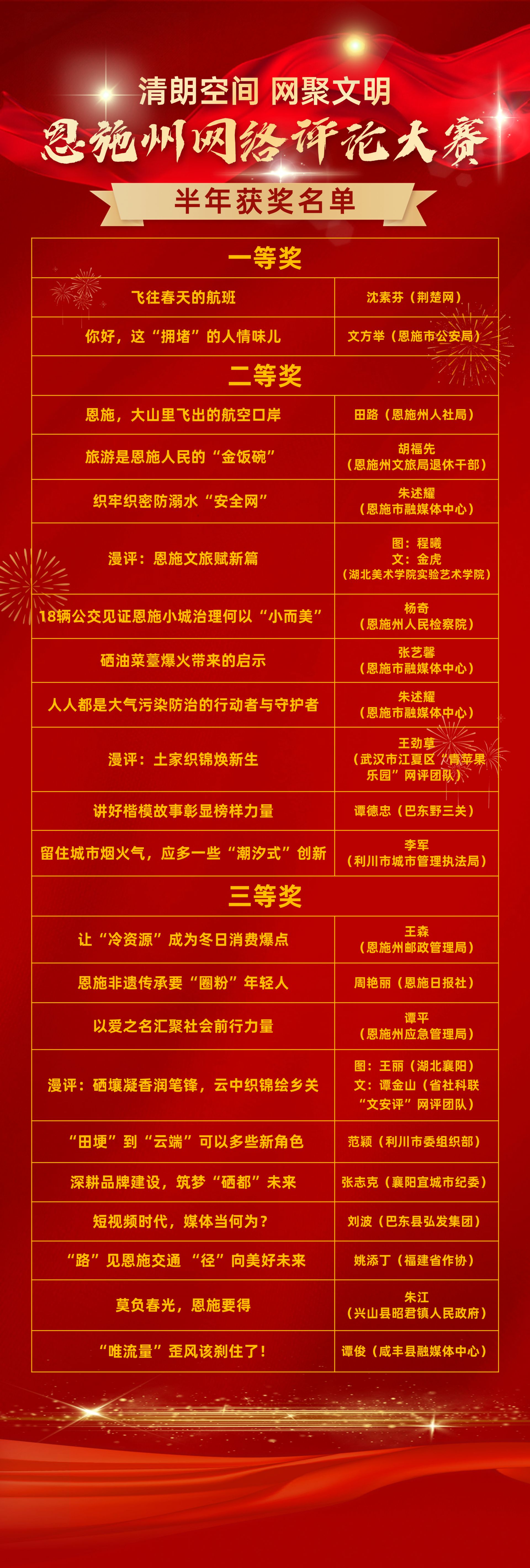Jingchu.com(Hubei Daily)新闻(记者Shu Lang),Ensei County在线审查竞赛的组织委员会已发布了2025年上半年的获奖者名单。