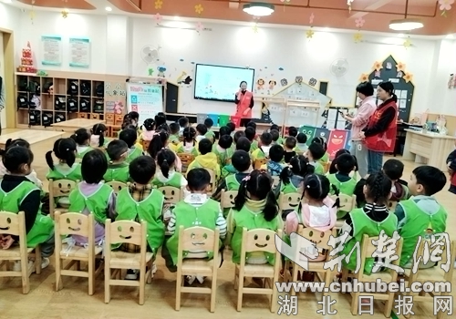 京中网(湖北日报)讯(石文军通讯员)10月17日,湖北湘高控股牧康峪街道公司联合连山湖社区,走进襄阳高新区国投牧鸡国嘉悦城幼儿园,宣传垃圾分类,开展学校广告活动。提高儿童的环保意识。