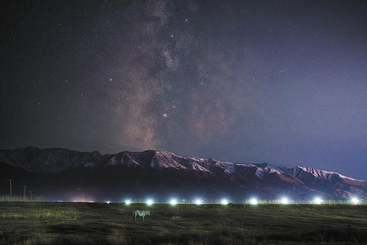 9月23日,星空下,新疆维吾尔自治区八廓哈萨克自治县高家湖湿地。戴建峰/中国日记
